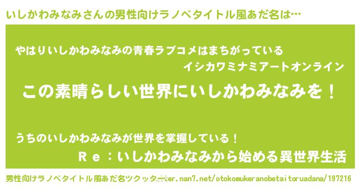 | 意味不明あだ名 | 『住所不定無職いしかわみなみ(65歳)』 |