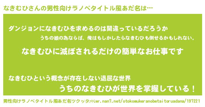 | ポケモン風あだ名 | 『ナキゴンZ』『ヒナキムヒ』 |