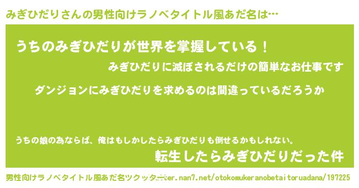 | 萌えアニメ | 主人公(みぎひだり)のあだ名『 みぎぴょん』 |