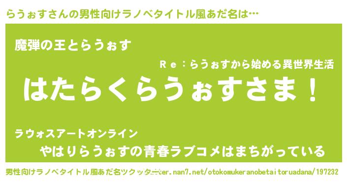 | 意味不明あだ名 | 『住所不定無職らうぉす(77歳)』 |