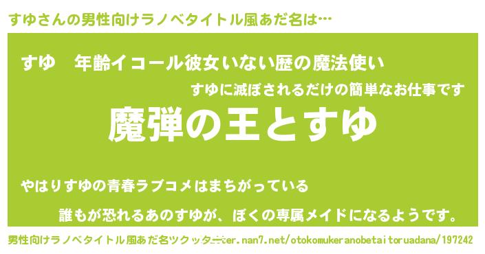 | 女子向けラノベタイトル風あだ名 | 『すゆが死なない童話 林檎のすゆの診療簿』 |