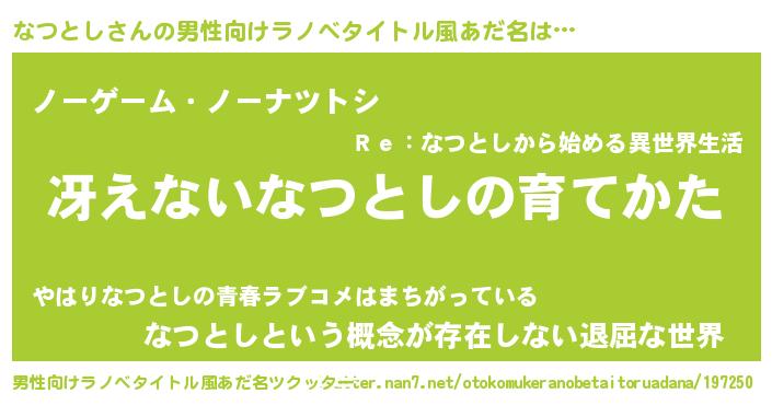 | ヒーロー風カッコイイあだ名 | 『友情の使者なつとし』『ネオナツトシ』 |
