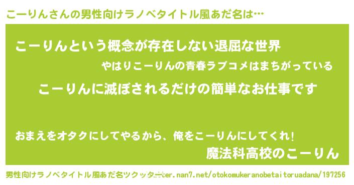 | 意味不明あだ名 | 『永久保存こーりん』『自称こーりん』 |