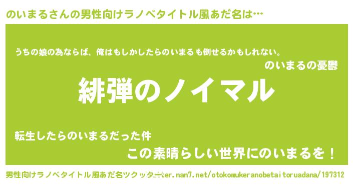 | 女子向けラノベタイトル風あだ名 | 『シンデレラのいまる家の靴箱館』 |