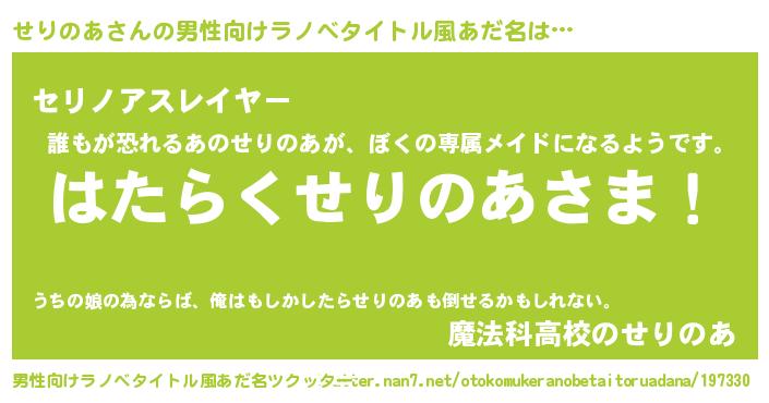 | 意味不明あだ名 | 『しいたけ科せりのあ属』『自称せりのあ』 |