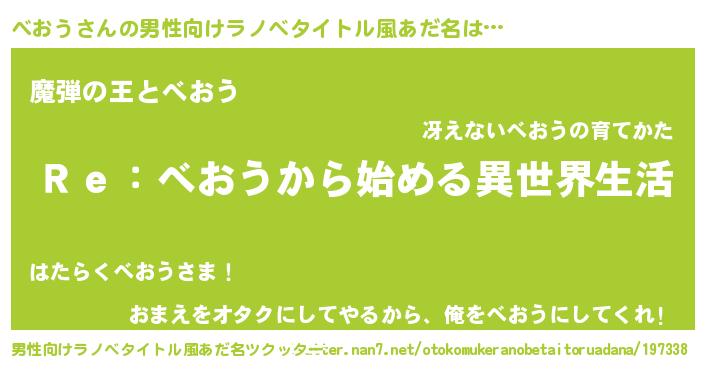 | 意味不明あだ名 | 『自称べおう』『住所不定無職べおう(50歳)』 |