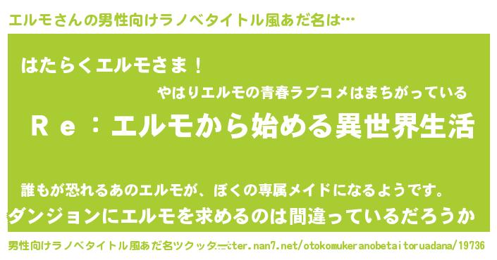 | 意味不明あだ名 | 『自称エルモ』『とにかく怪しいエルモ』 |