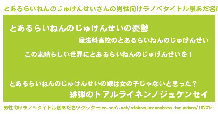 | 胡散臭い通販商品みたいなあだ名 | 『あなたにだけ特別に提供する世界で10本だけ現存している希少なブランデー…その名も「とあるらいねんのじゅけんせい」』 |