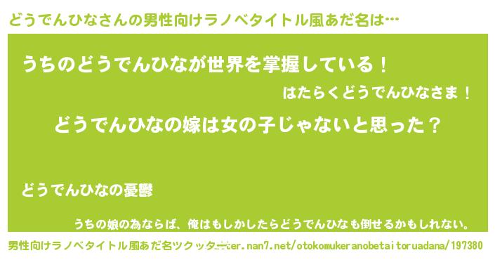 | 女子向けラノベタイトル風あだ名 | 『どうでんひな様がみてる』 |