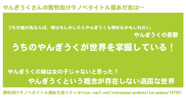 | 女子向けラノベタイトル風あだ名 | 『男装やんぎうくの憂鬱な任務』 |