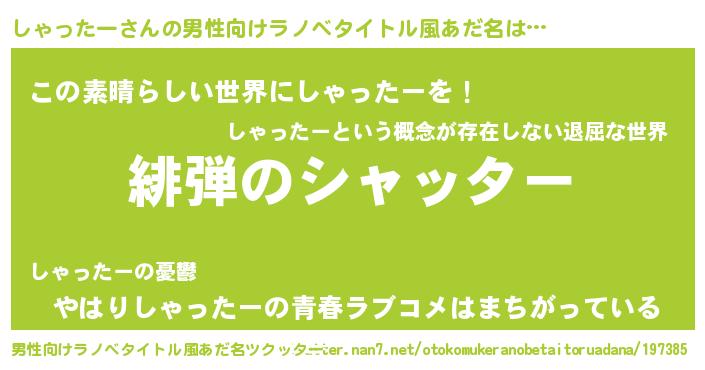 | ヒーロー風カッコイイあだ名 | 『仮面シャダー』『ネオシャッター』 |