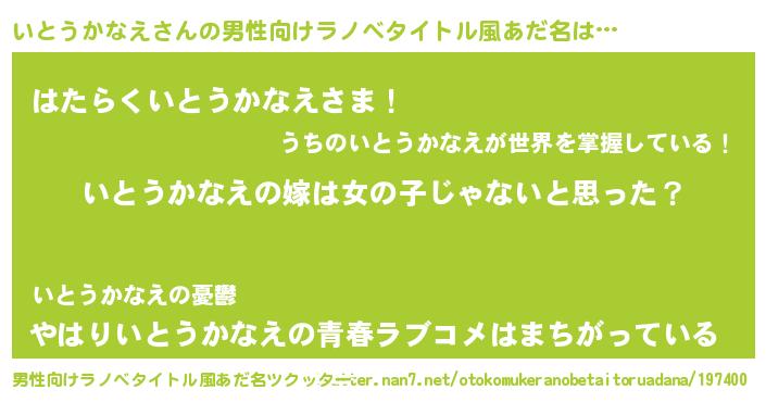 | 女子向けラノベタイトル風あだ名 | 『いとうかなえの卵を拾いまして』 |