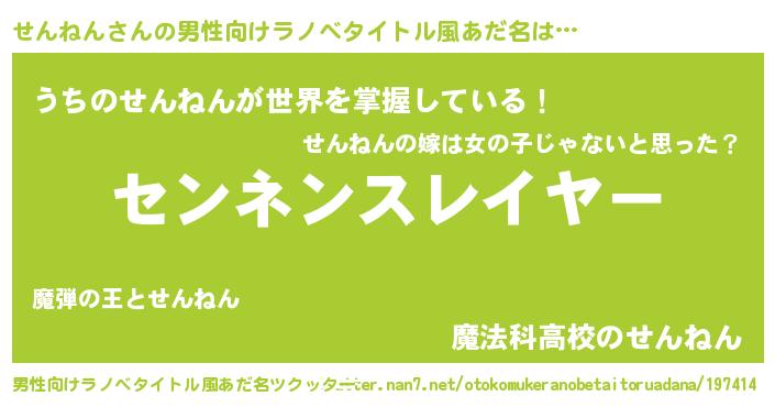| ヘコむあだ名 | 『せん太郎』『せんねん(苦笑)』 |