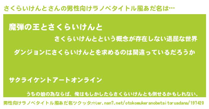 | 女子向けラノベタイトル風あだ名 | 『さくらいけんとは平凡を望む』 |