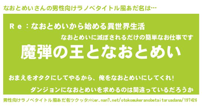 | ヒーロー風カッコイイあだ名 | 『仮面ナオダー』『究極戦士ナオトメイ』 |