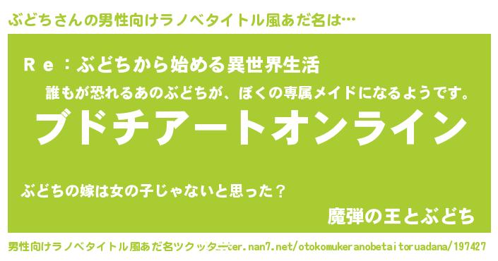 | 胡散臭い通販商品みたいなあだ名 | 『億万長者になれるブレスレット…その名も「ぶどち」』 |