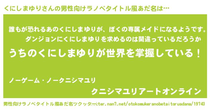 | ヒーロー風カッコイイあだ名 | 『ネオクニシマユリ』『幻影騎士クニ』 |