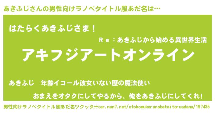 | ヘコむあだ名 | 『あきにー』『あきふじ(笑)』 |