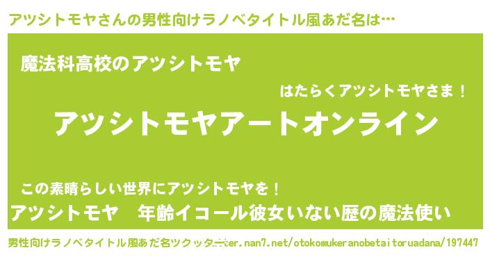 アツシトモヤさんの男性向けラノベタイトル風あだ名をツクッター!