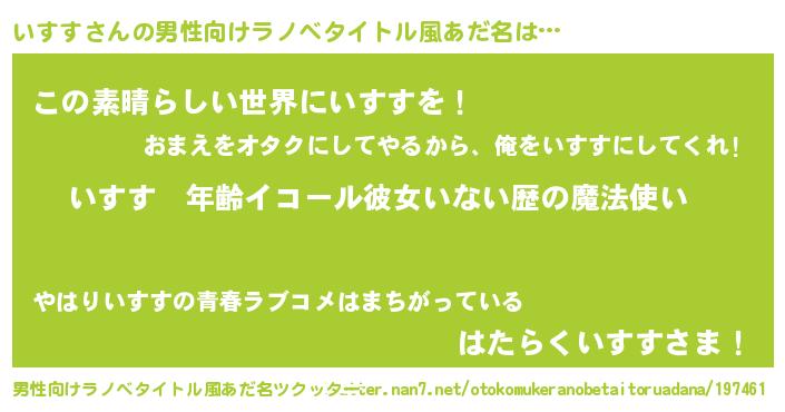 | 胡散臭い通販商品みたいなあだ名 | 『あなたにだけ特別に提供する世界で10本だけ現存している希少なブランデー…その名も「いすす」』 |