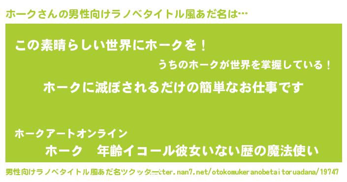 | 意味不明あだ名 | 『住所不定無職ホーク(47歳)』 |