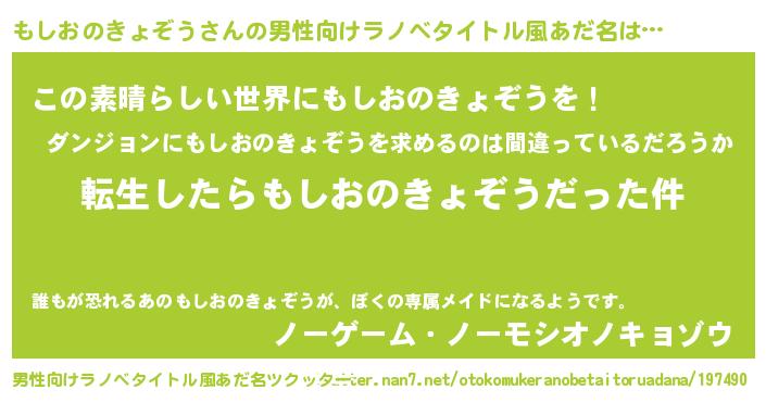 | 料理風あだ名 | 『もしおのきょぞうごはん』 |