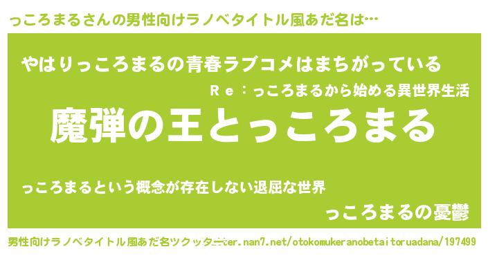 | 女子向けラノベタイトル風あだ名 | 『っころまるが死なない童話 林檎のっころまるの診療簿』 |