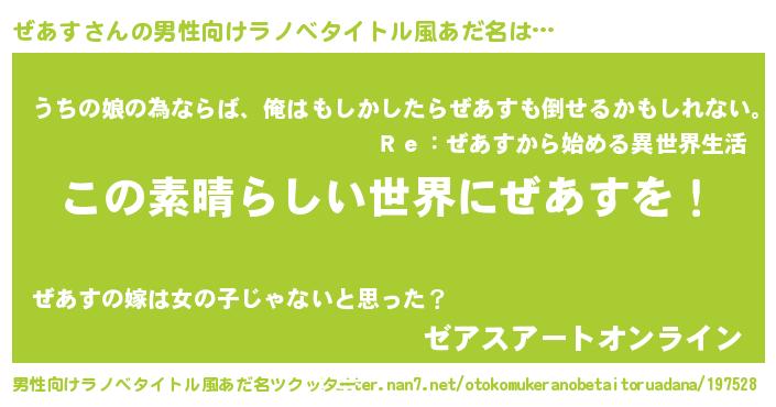 | 意味不明あだ名 | 『住所不定無職ぜあす(1歳)』『自称ぜあす』 |