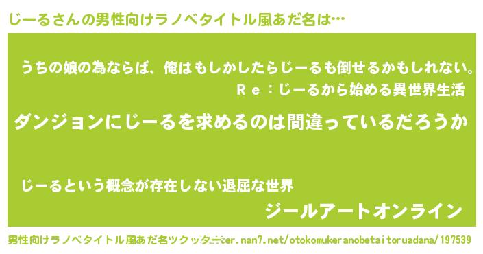 | 女子向けラノベタイトル風あだ名 | 『じーるの卵を拾いまして』 |