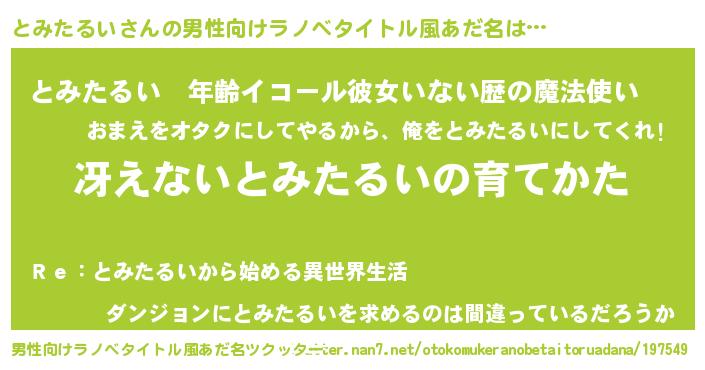 | 胡散臭い通販商品みたいなあだ名 | 『伝統あるサプリメント…その名も「とみたるい」』 |