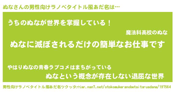 | 意味不明あだ名 | 『永久保存ぬな』『自称ぬな』 |