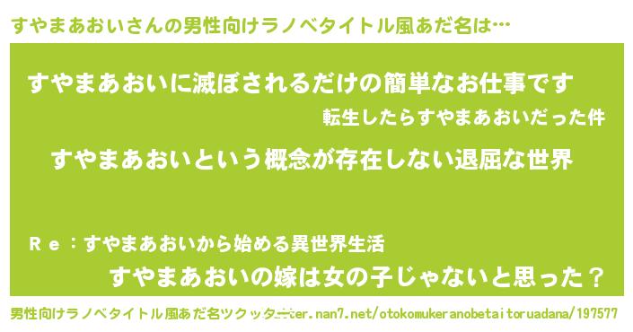 | 女子向けラノベタイトル風あだ名 | 『異世界で失敗しない100のすやまあおい』 |