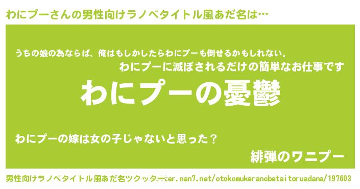 | 胡散臭い通販商品みたいなあだ名 | 『モテモテ間違いなし霊験あらたかなお札…その名も「わにプー」』 |
