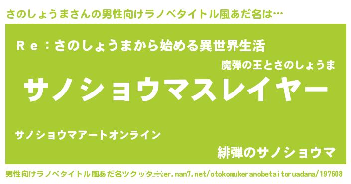 | 伝説のあだ名 | 『伝説の傭兵さのしょうま』 |