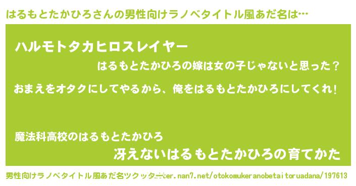 | 女子向けラノベタイトル風あだ名 | 『はるもとたかひろ恋絵巻』 |