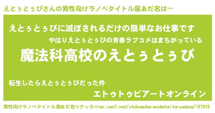 | ファンタジー風あだ名 | 『ゼエトトゥ』『エトフェル』 |