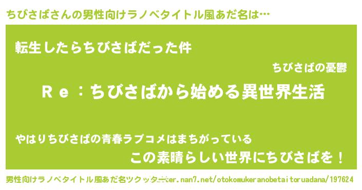| 女子向けラノベタイトル風あだ名 | 『ちびさばストレイドッグス』 |