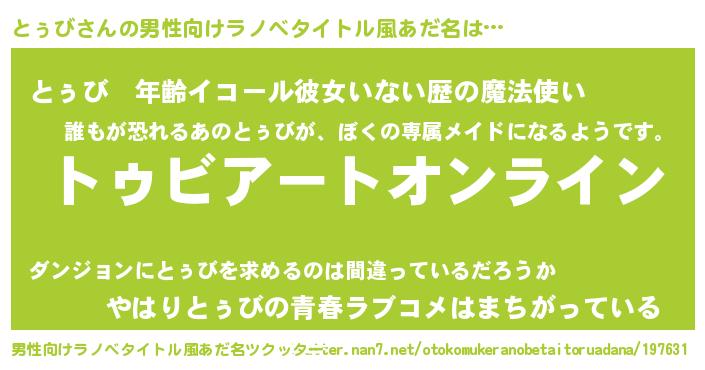 | 胡散臭い通販商品みたいなあだ名 | 『億万長者になれる水晶球…その名も「とぅび」』 |