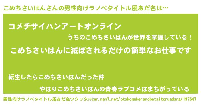 | 胡散臭い通販商品みたいなあだ名 | 『モテモテ間違いなし水晶球…その名も「こめちさいはん」』 |