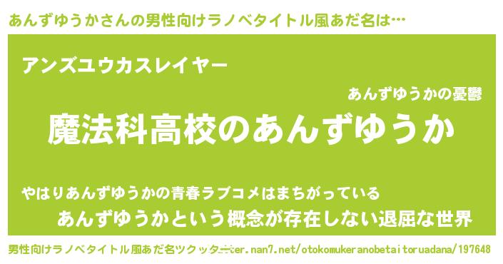 | 女子向けラノベタイトル風あだ名 | 『あんずゆうかなんてお断りですっ。』 |