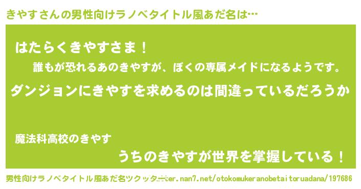 | 胡散臭い通販商品みたいなあだ名 | 『信頼と実績のサプリメント…その名も「きやす」』 |