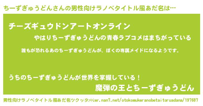 | 伝説のあだ名 | 『古文書に記された勇者ちーずぎゅうどん』 |