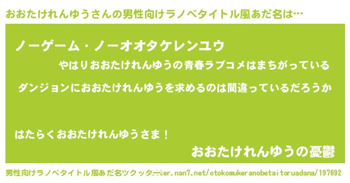| 女子向けラノベタイトル風あだ名 | 『おおたけれんゆうは平凡を望む』 |