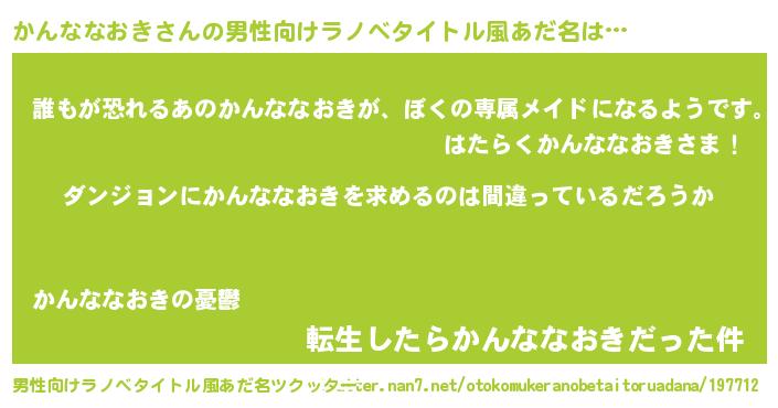 | 女子向けラノベタイトル風あだ名 | 『かんななおきの卵を拾いまして』 |