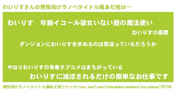 | 女子向けラノベタイトル風あだ名 | 『わいりすは平凡を望む』 |