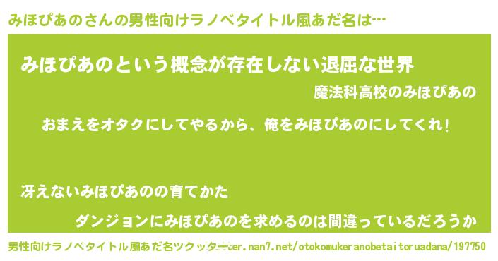 | 女子向けラノベタイトル風あだ名 | 『みほぴあの夫妻のなれそめ』 |