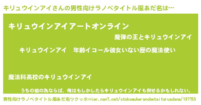 | 女子向けラノベタイトル風あだ名 | 『キリュウインアイの玉の輿計画!』 |