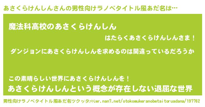 | 意味不明あだ名 | 『とにかく怪しいあさくらけんしん』 |