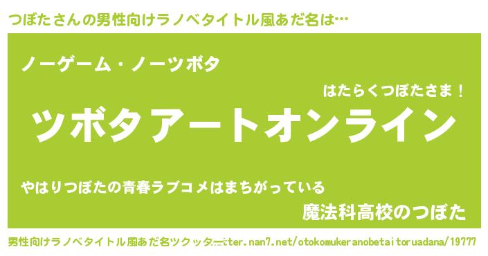 | 女子向けラノベタイトル風あだ名 | 『つぼた姫と円卓の騎士』 |