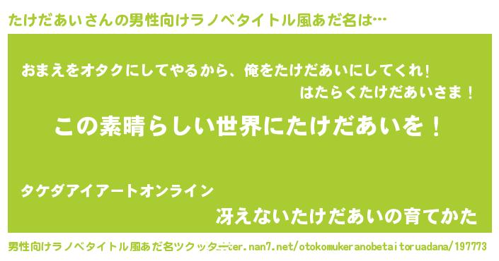| ヘコむあだ名 | 『たけもー』『たけだあい(笑)』 |